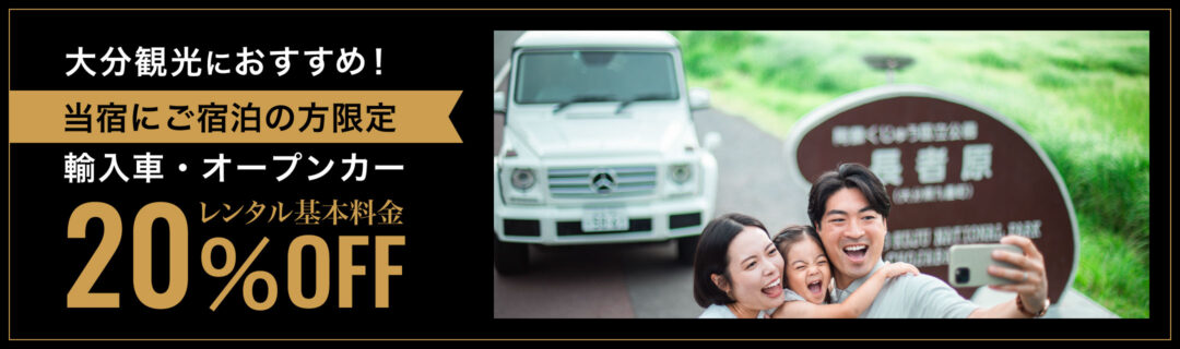 当館にご宿泊予定のお客様を対象に、レセンスレンタカー(https://resenserentacar.jp/oita/)でご利用いただけるレンタカー20%OFFキャンペーンがスタートしました。